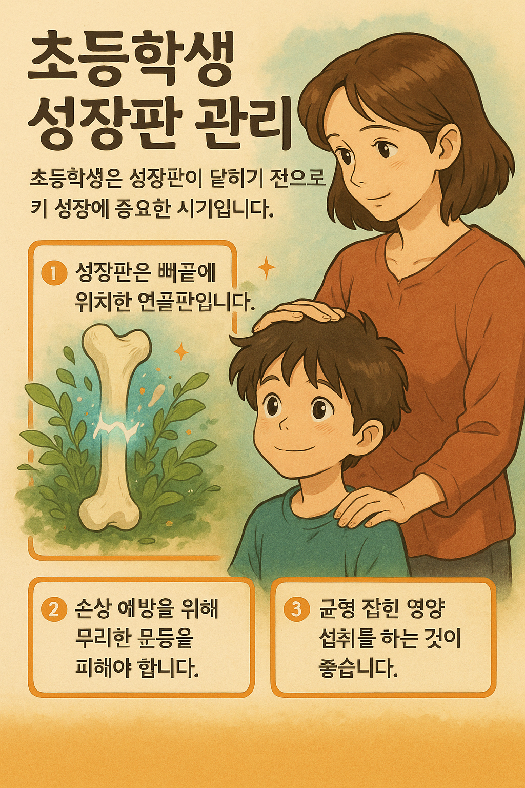 “또래보다 우리 아이 키가 너무 작아요.”“성장판 검사받아야 할까요?”“성조숙증은 아닐까요?” 아이의 키 성장은 많은 부모들의 걱정거리입니다.하지만 병원에 가보면 실제로 성장판 문제가 아니라 생활 습관 문제인 경우가 많습니다. 성장호르몬은 수면, 운동, 식사, 정서 상태 등 다양한 요인에 영향을 받습니다.오늘은 우리 아이 키 성장을 위해 부모가 꼭 알아야 할 생활 습관 5가지를 구체적으로 알아보겠습니다.✅ 키 성장에 방해가 되는 생활 습관 5가지1️⃣ 수면 부족 – 성장호르몬이 분비될 시간이 없다!성장호르몬은 밤 10시부터 새벽 2시 사이 깊은 수면 중에 가장 많이 분비됩니다.하지만 초등학생 중에도 밤 11시, 자정이 넘어서 자는 아이들이 많습니다.스마트폰 사용, 늦은 학원 수업, 과도한 숙제가 원인이죠..